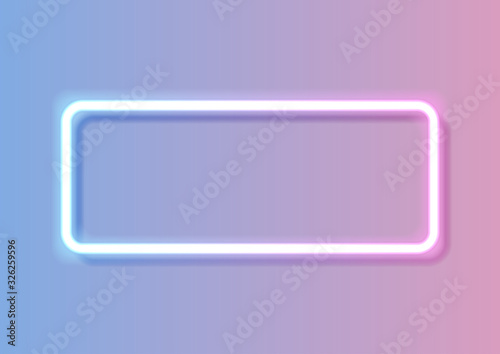 Blue and pink rectangle neon frame. Technology retro sci-fi abstract futuristic background. Vector pastel colors design