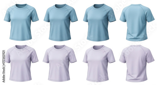 Blue and purple t shirts isolated on a transparent background