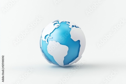 Blue and white 3D globe icon on a white background. Globalization and communication concept