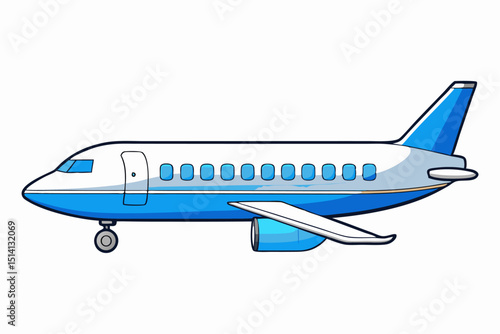 Blue and white airplane side view cartoon illustration