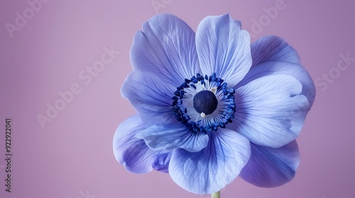 blue anemone flower on purple background