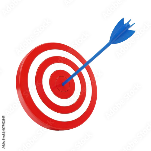 Blue arrow hitting the bullseye on a target, isolated on transparent background