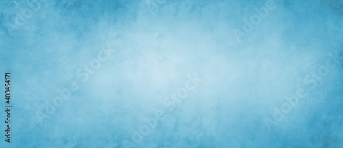 Blue background. pastel sky blue mottled border texture and blurred grunge design in old vintage background with soft white center color.