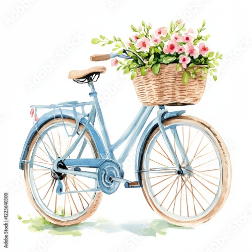 Blue bicycle with a basket full of flowers