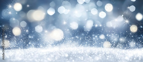 Blue bokeh sparkling background with glittering lights and soft focus creating an enchanting winter ambiance for festive designs