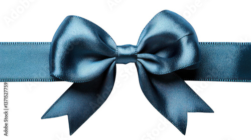 Blue bow tied neatly with a ribbon on a white background