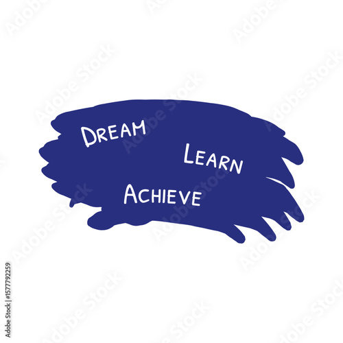 Blue brush banner with the motivational message “Dream. Learn. Achieve.”