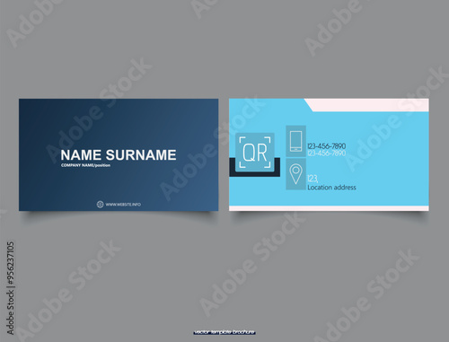 Blue business card. Contact icons. Flyer and Leaflet, Cards, Landing . Vector illustration.
