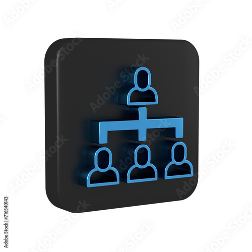 Blue Business hierarchy organogram chart infographics icon isolated on transparent background. Corporate organizational structure graphic elements. Black square button.