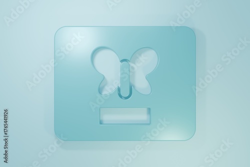 Blue Butterfly in a frame icon isolated on blue background. Herbarium. Minimalism concept. 3D render illustration