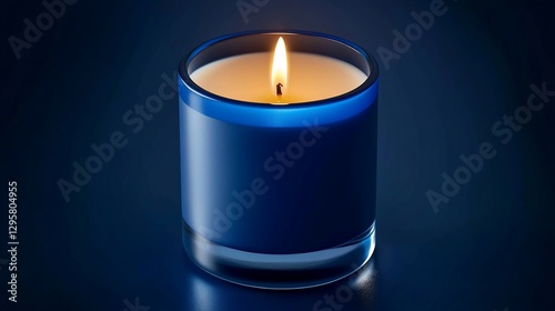 Blue candle burning, dark background, relaxation, product shot