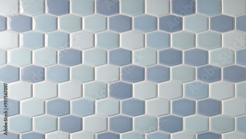 Blue ceramic tile wall or floor background. Design wallpaper copyspace.
