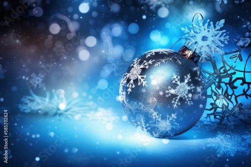 blue Christmas ornament with snowflakes on white background. Generative AI
