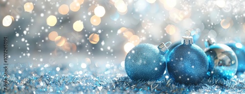 Blue Christmas Ornaments with a Sparkling Background
