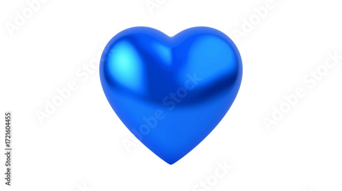 Blue chrome heart with smooth surface stands out on transparent background for romantic themes and digital designs.