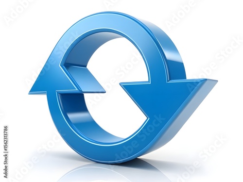 Blue Circular Arrows: A 3D rendering of two shiny blue arrows forming a continuous circular motion, symbolizing renewal, recycling, or continuous improvement.