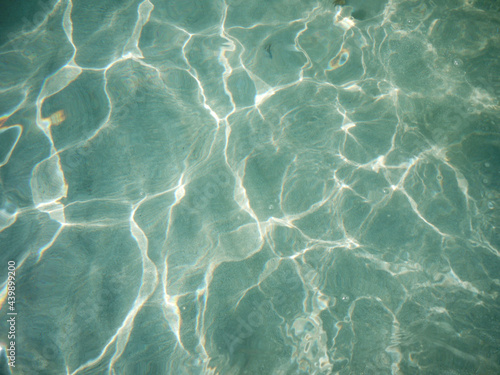 blue, clear and transparent sea water with sun glare