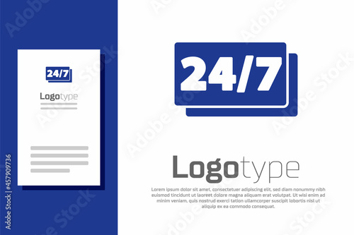 Blue Clock 24 hours icon isolated on white background. All day cyclic icon. 24 hours service symbol. Logo design template element. Vector