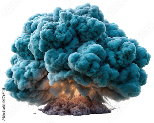Blue cloud explosion with dramatic smoke, digital illustration for analytics, data visualization, or creative design, isolated on transparency background, energetic and dynamic concept