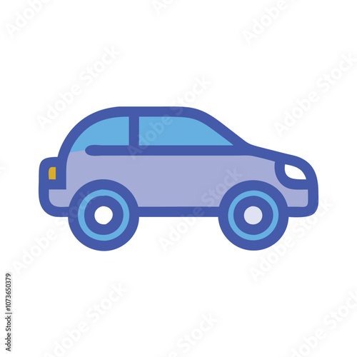 Blue compact car vector side profile, Flat vector illustration of a blue compact car shown in side view, with simple lines and a modern design.