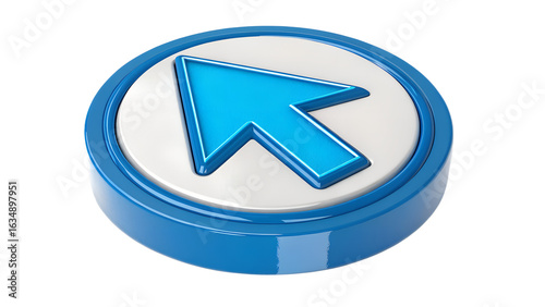 Blue computer mouse cursor arrow pointer on a white and blue circular button isolated on transparent background