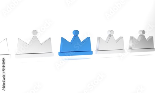 Blue Crown icon isolated on white background. Minimalism concept. 3D render illustration