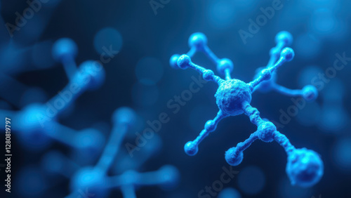 Blue crystal-like structures resembling a molecule with a long tail, possibly representing Semaglutide.