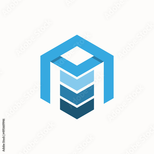 blue cube logo with hexagon shape.