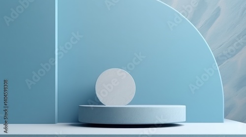 Blue Cylinder podium rendering 3d for showcase product display. AI generated image