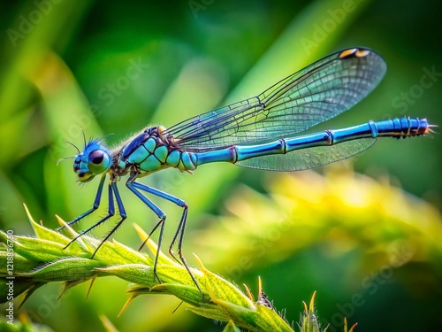 Blue Damselfly on Plant Stem - High Depth of Field