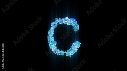 blue diamonds or ice letter C on black background, isolated - object 3D rendering