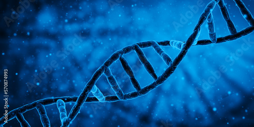 Blue DNA structure science research biology and medical concept. 3d illustration