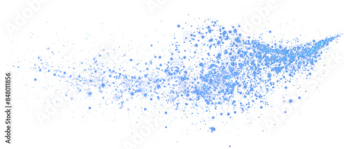 Blue dust, sparks and blue stars shine with special light. Trace of speed lines. Christmas light effect. Sparkling magic dust particles. PNG.