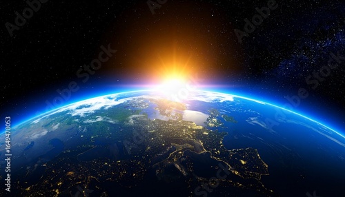 Blue Earth and the floating sun seen from space