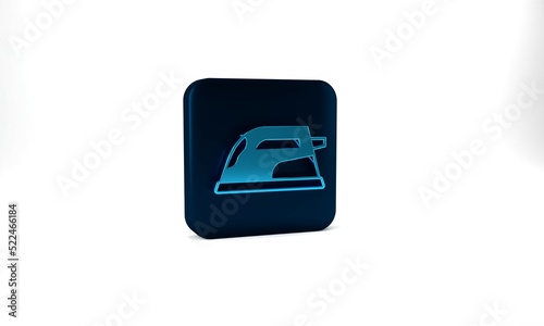 Blue Electric iron icon isolated on grey background. Steam iron. Blue square button. 3d illustration 3D render