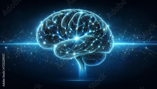 Blue Energy Sphere Illuminating Abstract Light Background with Brain and Lightning Elements