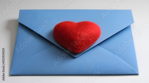 Blue Envelope with Red Felt Heart, Romantic Love Letter Concept