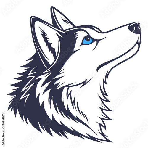 Blue eyed husky head in clean bold cartoon vector format