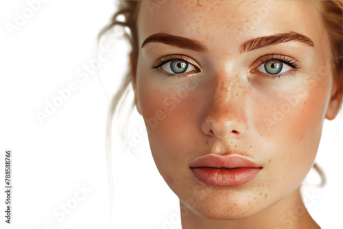 blue eyed woman close up isolated on white background