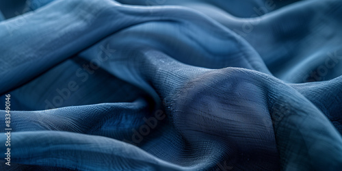 Blue fabric with delicate folds. Silk satin fabric backdrop with copy space.