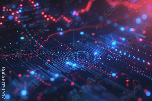 Blue financial graphs and charts with coins show business growth and investment market profits.
