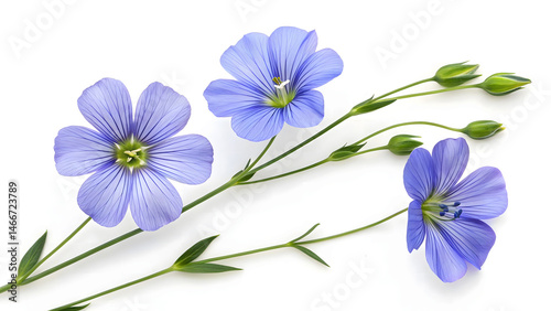 Blue Flax Flowers on White Background High Resolution Botanical Image
