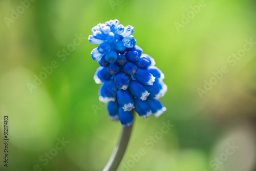 blue flower muscari in spring outdoors. gardening, flower breeding, spring, flowering