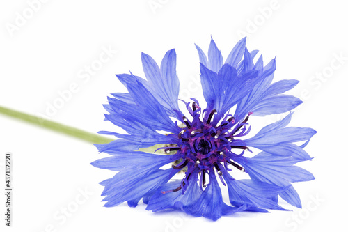 Blue flower of cornflower, lat. Centaurea, isolated on white background
