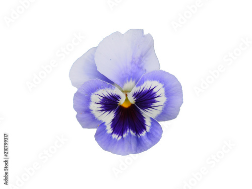 Blue flower of garden pansy (Viola) isolated on white background.