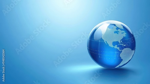 Blue globe with traversing line, exploring global connections and worldwide network