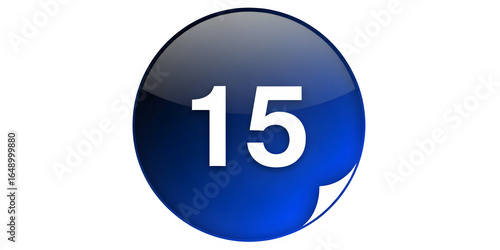 Blue glossy orb with the number fifteen, simple graphic design element for web use