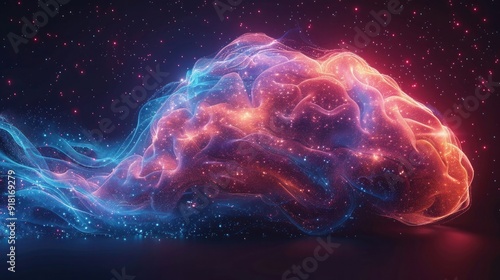 Blue Glowing Brain with Color Lines - Abstract Neuroscience Concept