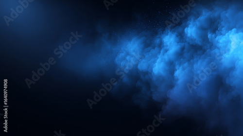 Blue glowing smoke or mist swirling against a dark background, creating a mysterious and ethereal atmosphere with soft, flowing textures