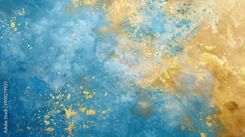 blue gold background with texture and distressed vintage grunge and watercolor paint stains in elegant Christmas backdrop illustration - generative ai